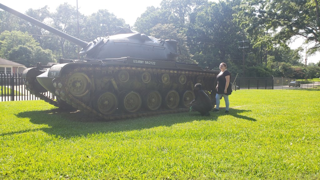 Pictured here with team members Shelby and Trevor is the M48 Patton Tank. Designed to replace the M46 and M47 tanks used extensively in the Korean war, the M48 was heavily employed during the Vietnam war seeing more than 600 deployments. Major modifications from previous models include redesigned hull, improved suspension, and the addition of a hemispherical turret.