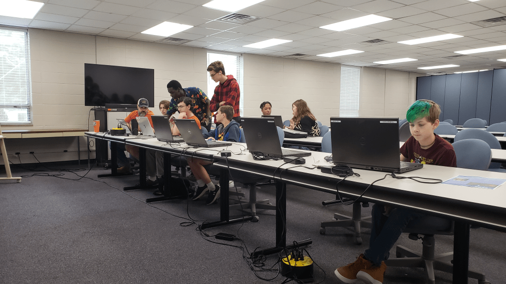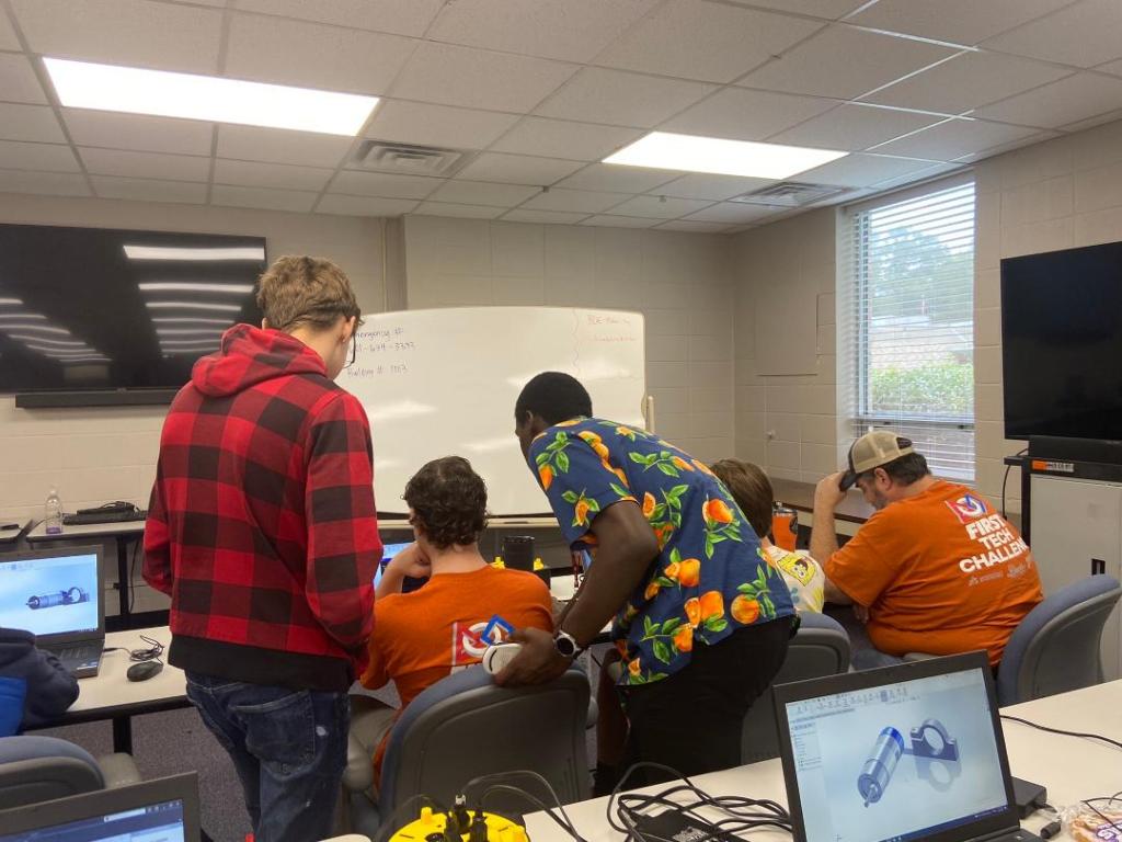 Our attendees included community members without robotics experience, but the class also served as a primer for our own new team members on using the program. Additionally, we were happy to host reigning state champions FTC team #14236 Slight Malfunction. The class was taught primarily by our coach Mr. Cody, a SolidWorks professional, but our team alumni Trevor contributed to the presentation by teaching sketching in the program. Supplementing the class was a tour of our team’s shop and the other facilities housed within ERDC’s FWD center such as the 3D printers, laser cutters, and machining equipment used to bring CAD designs to fruition.