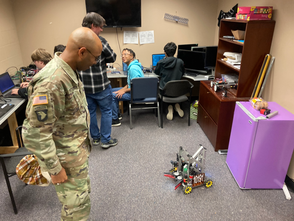 On November 17th, Trial and Error Robotics had the pleasure of hosting ERDC’s Colonel Christian Patterson in our workshop at ERDC’s Future Workforce Development (FWD) Center. During his visit, we presented the Colonel with the operations of our team, as well as information on Gracious Professionalism and the FIRST organization as a whole. We spoke with the Colonel, who oversees ERDC’s operations as a whole, about how teams like ours can better interface with the professional engineers around them. Given his professional background in communications, the Colonel gave us helpful answers, and our journalists Lauren and Wesley were happy to sit down with him for the interview below.