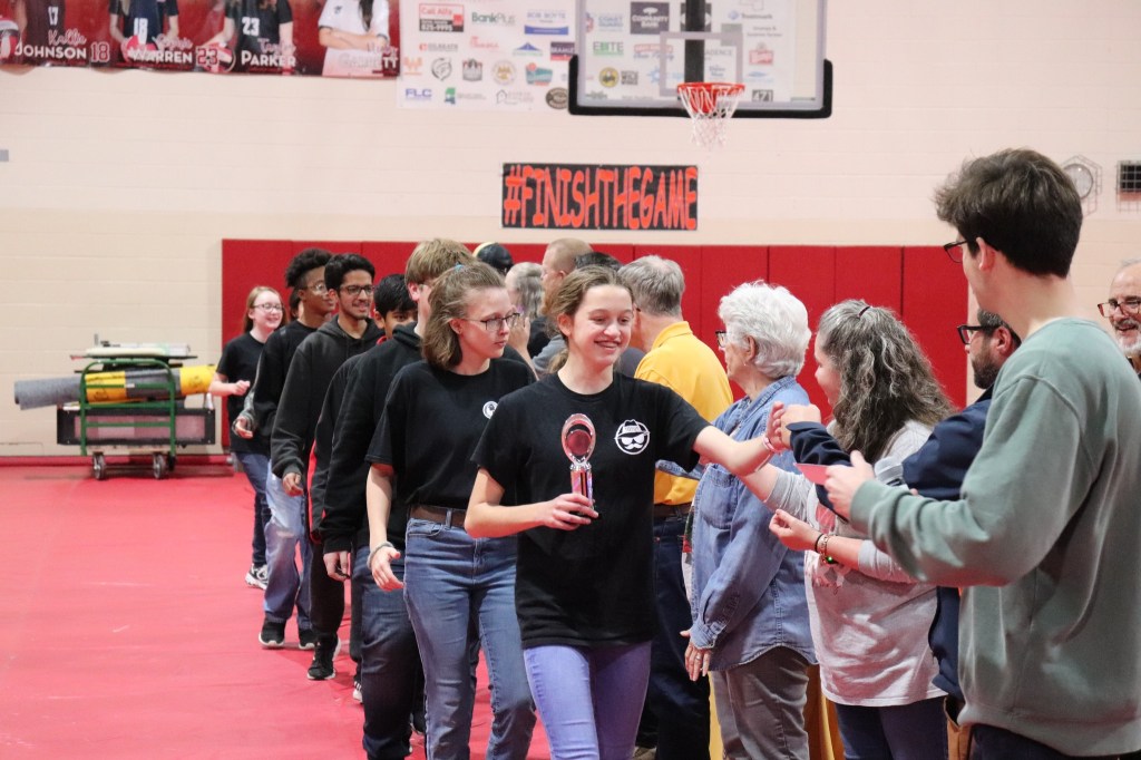 Our team’s perseverance earned us an Alliance selection. Wearing the mascot mask, our team captain graciously accepted an invitation from the second-ranked alliance, the Robotic Raiders. This alliance led to a successful partnership in the semi-finals and finals. Our victory earned the team recognition for our innovative mailbox design and a golden ticket to the state competition.