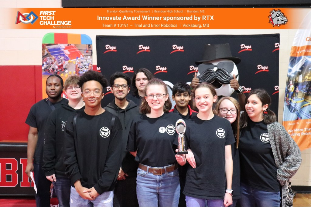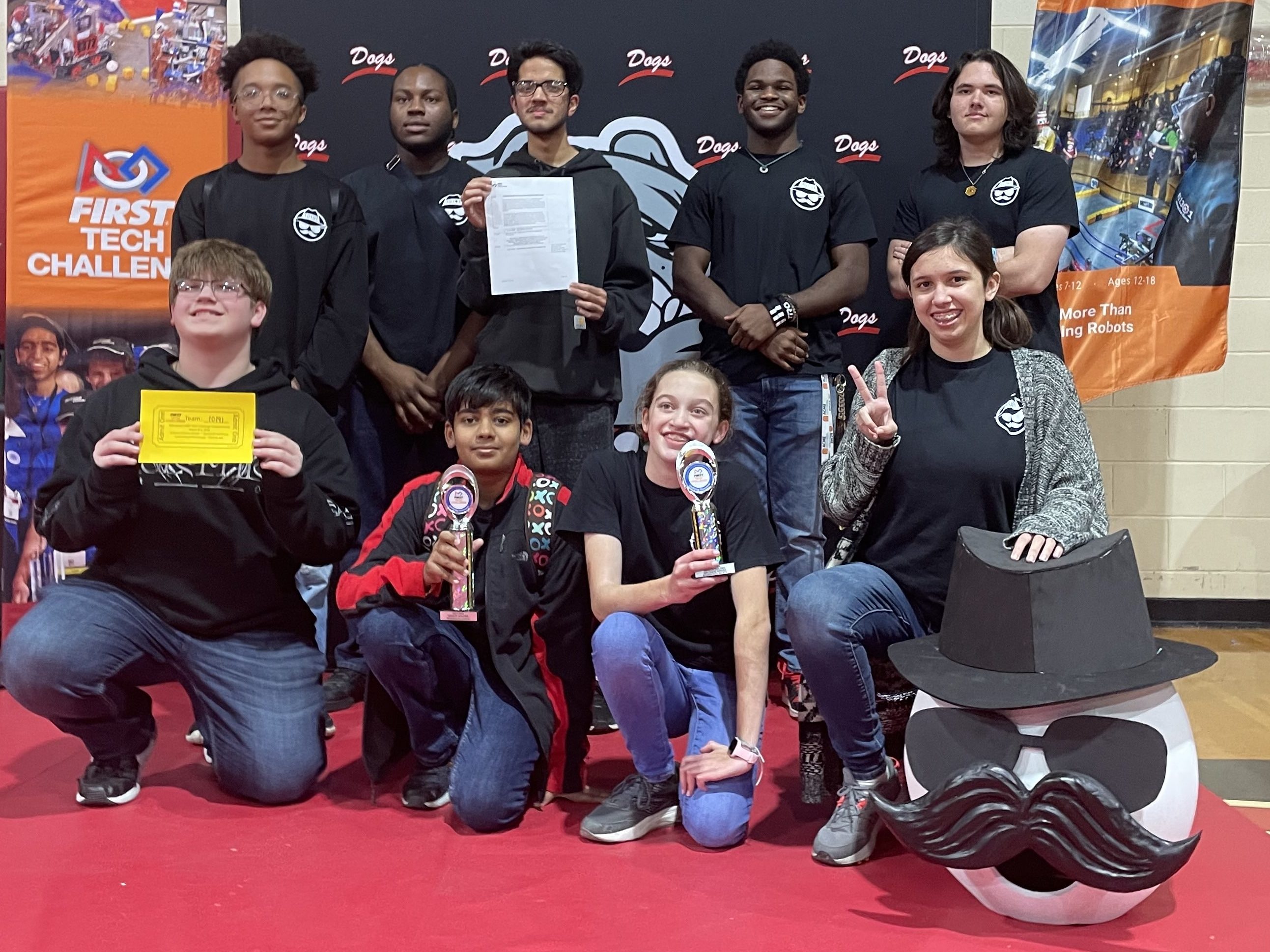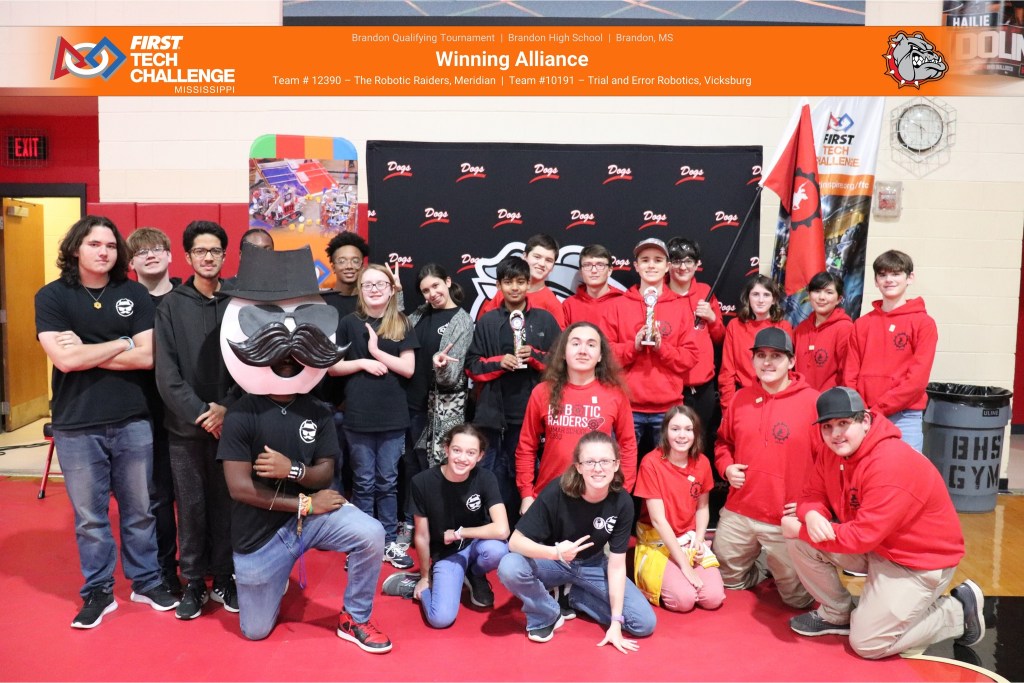 It was an early morning for Trial and Error Robotics. We were headed to Brandon High School for the FIRST Tech Challenge qualifier competition. This event is the first qualifier competition for the 2023-24 season. The team was excited to unveil their new mascot, General Mayhem, which included a large mask. Our mascot even caught the attention of Mr. Mannie Lowe, the Mississippi FTC program manager.