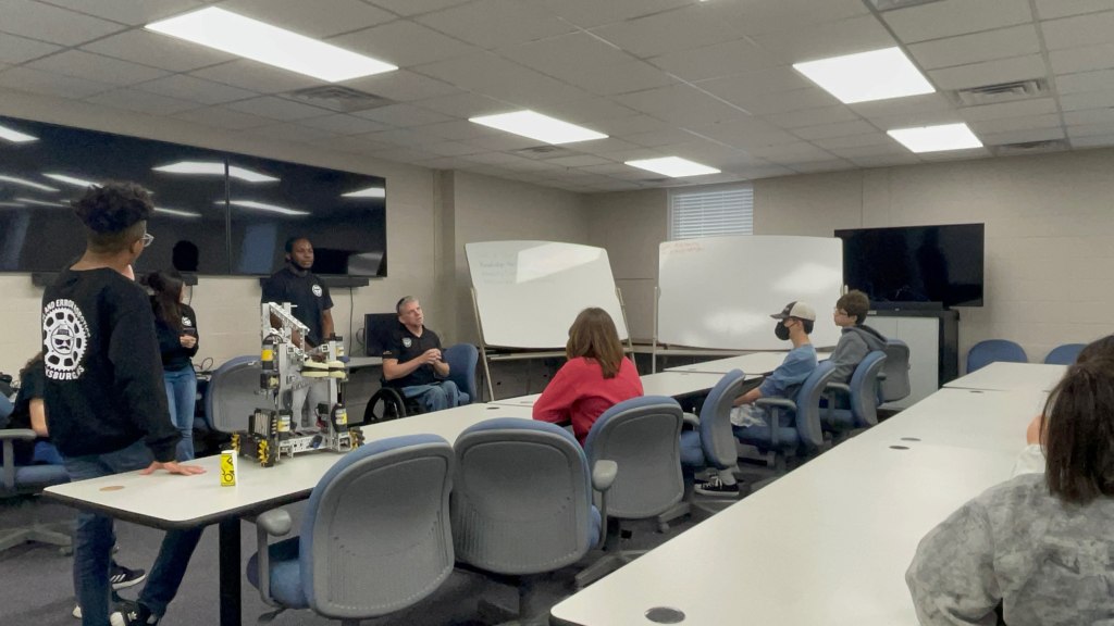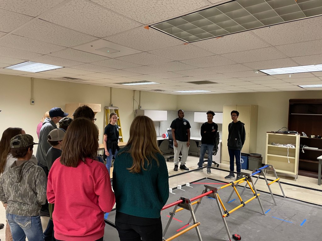 Before the tour began, our coach, Mr. Cody, briefly introduced our team and spoke about our facility. We started the tour by showing the class our 3D printer room. The students seemed very interested in the 3D printers. Mrs. Ashley, one of our mentors, explained how 3D printers work to the group and answered their questions.