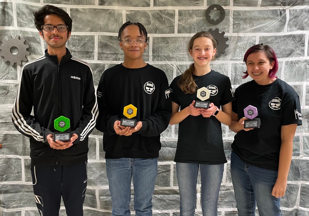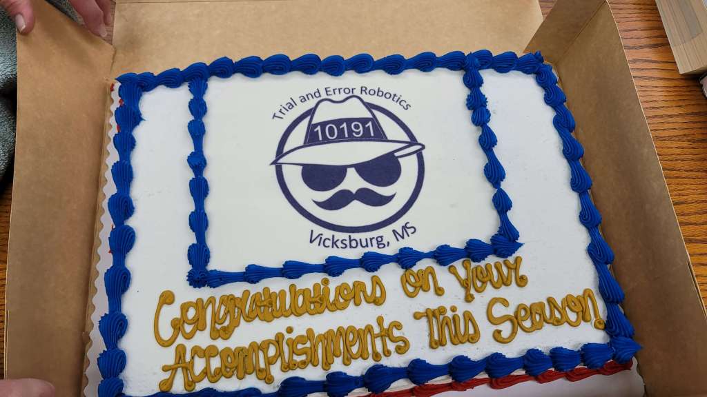 Recently, we took a little break to celebrate our achievements from this past season with a little party. A few team members really stood out throughout the season, so we took time to recognize their efforts. The Knowledge Award went to Melanie for her extensive understanding of our robot and how it worked. Shan was awarded the Most Valuable Player Award for his hard work and willingness to expand his skills. The Leadership Award was presented to our amazing team captain, Shayne, who led our team throughout the last two seasons and encouraged us to do our best. Lastly, was the Inspire Award, which was presented to Violet for her incredible work to inspire not only our team, but members of our community through her hard work and artistic creativity.