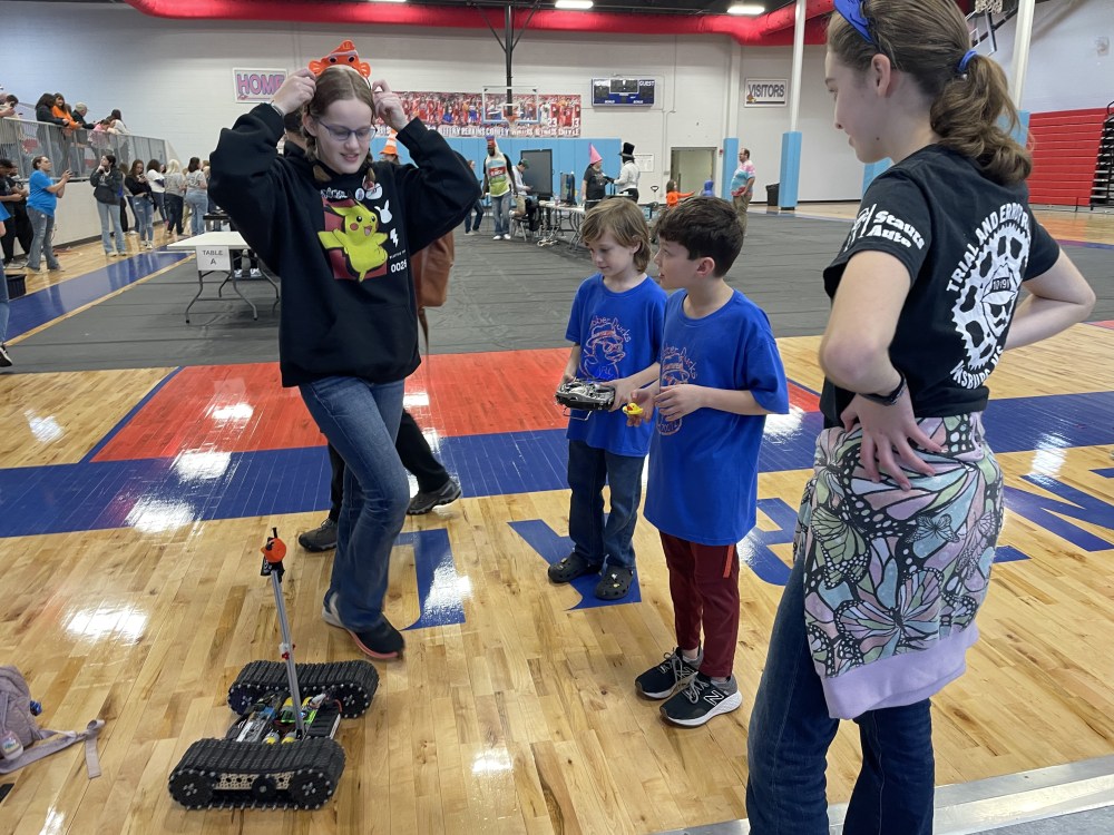 Team Trial & Error had the honor of rolling in with our trusty ‘Tank Bot,’ a machine as robust as it is entertaining. As we navigated the bustling competition, we let the kids—and even their parents—take the wheel! Watching their faces light up as they drove the bot was a delight. Who knows? Perhaps we inspired the next generation of robotics wizards to join our ranks!