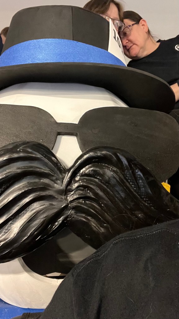 On Friday, we arrived at the Duff Center ready for our presentation, robot inspection and to get our team pictures taken with General Mayhem himself. First, we took our photos with Mayhem but we had to take them a second time due to some traffic issues involving team members having problems finding the building and some pesky geese. But they arrived safe and sound just in time to get our photos taken for the second time. Then we rushed to have our robot, ARGO, inspected before the competition. Three of our brave souls tackled this hurdle and came out triumphant. Next was our final test of the day, the team presentation. Our judges had many questions about ARGO and our team alike, which we answered with confidence and precision. The judges asked us a curious question though, do we have a team cheer? So we spent our evening working tirelessly to come up with a team cheer we could use the next day.