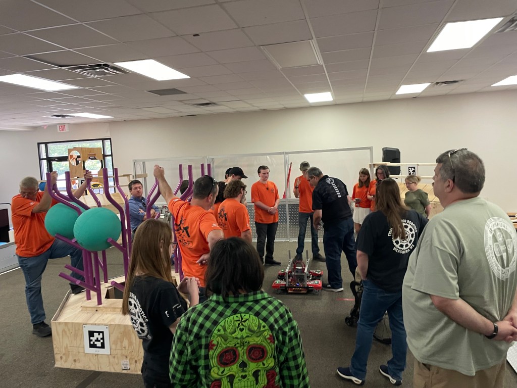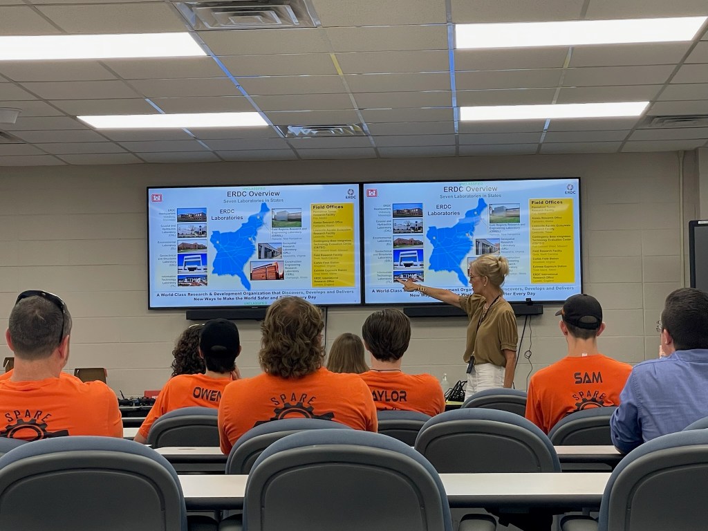 When Spare Parts arrived, our team members greeted them at the door with a warm welcome and a brief introduction. After getting to know each other, we led them to one of our classroom spaces, where Mrs. Tracy Gordon gave an inspiring overview of ERDC and its mission. Mrs. Gordon also shared information about future internship opportunities available to high school students, encouraging the visiting team to consider how their experience in robotics can open doors to STEM careers.