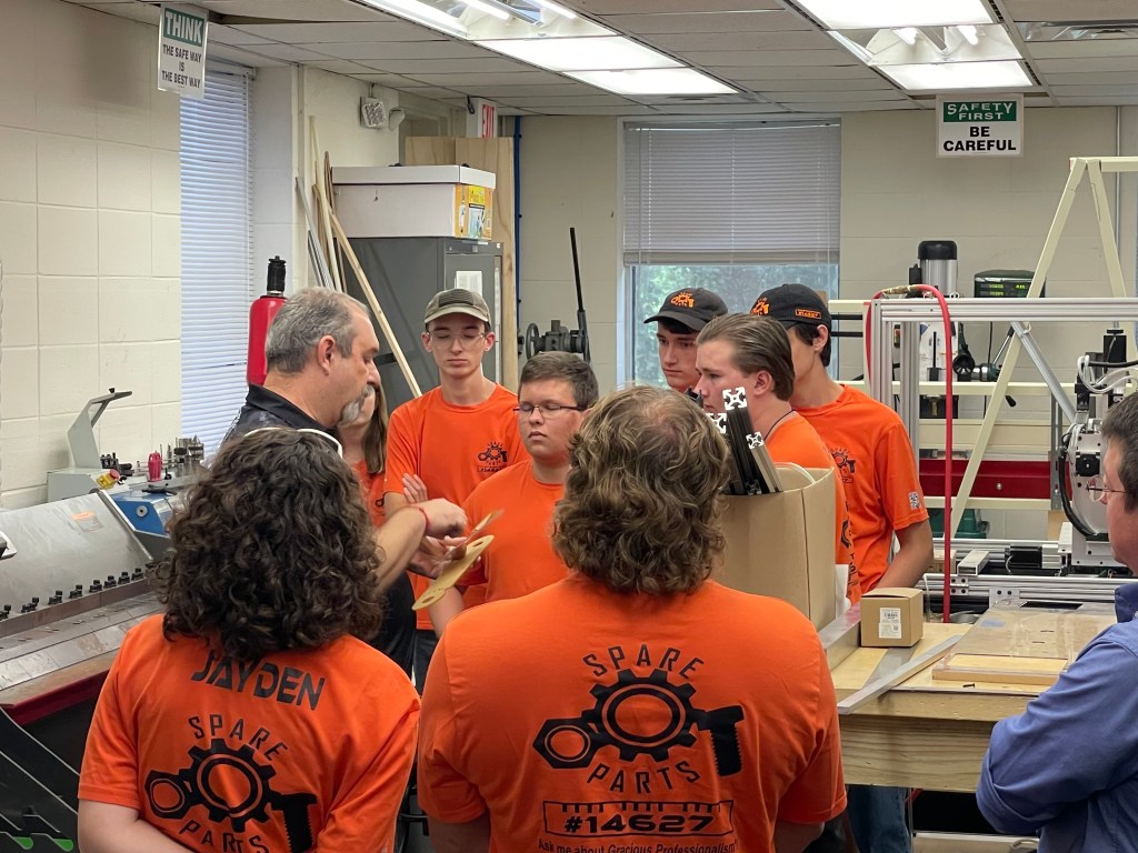The tour wrapped up in Team 456’s FRC workshop, where Chuck Dickerson, of our local FIRST Robotics Competition team, introduced their robot and discussed what it’s like to build and compete at the FRC level. Spare Parts got a behind-the-scenes look at how these larger bots are designed, programmed, and driven—along with stories from past seasons.