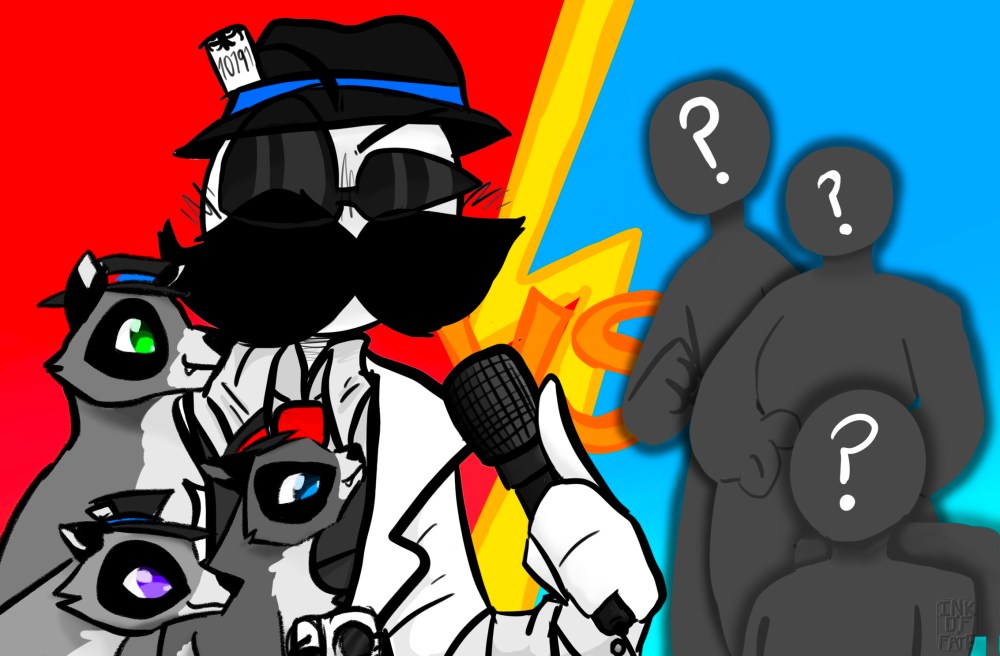 GM: (gets bonked by a random raccoon swinging the mic knocking GM’s hat off) What in the name of…(pauses, then puts his hat back on his head) That just happened, and to the amazing me. (turns back to B) Speaking of, let’s talk about me. Why did you create me, a guy with a hat, glasses, and a handsome mustache as a mascot?